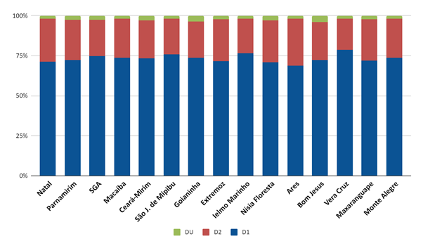 Gráfico 05_Proporção da aplicação da vacina por quantidade de doses disponíveis nos municípios da RMN