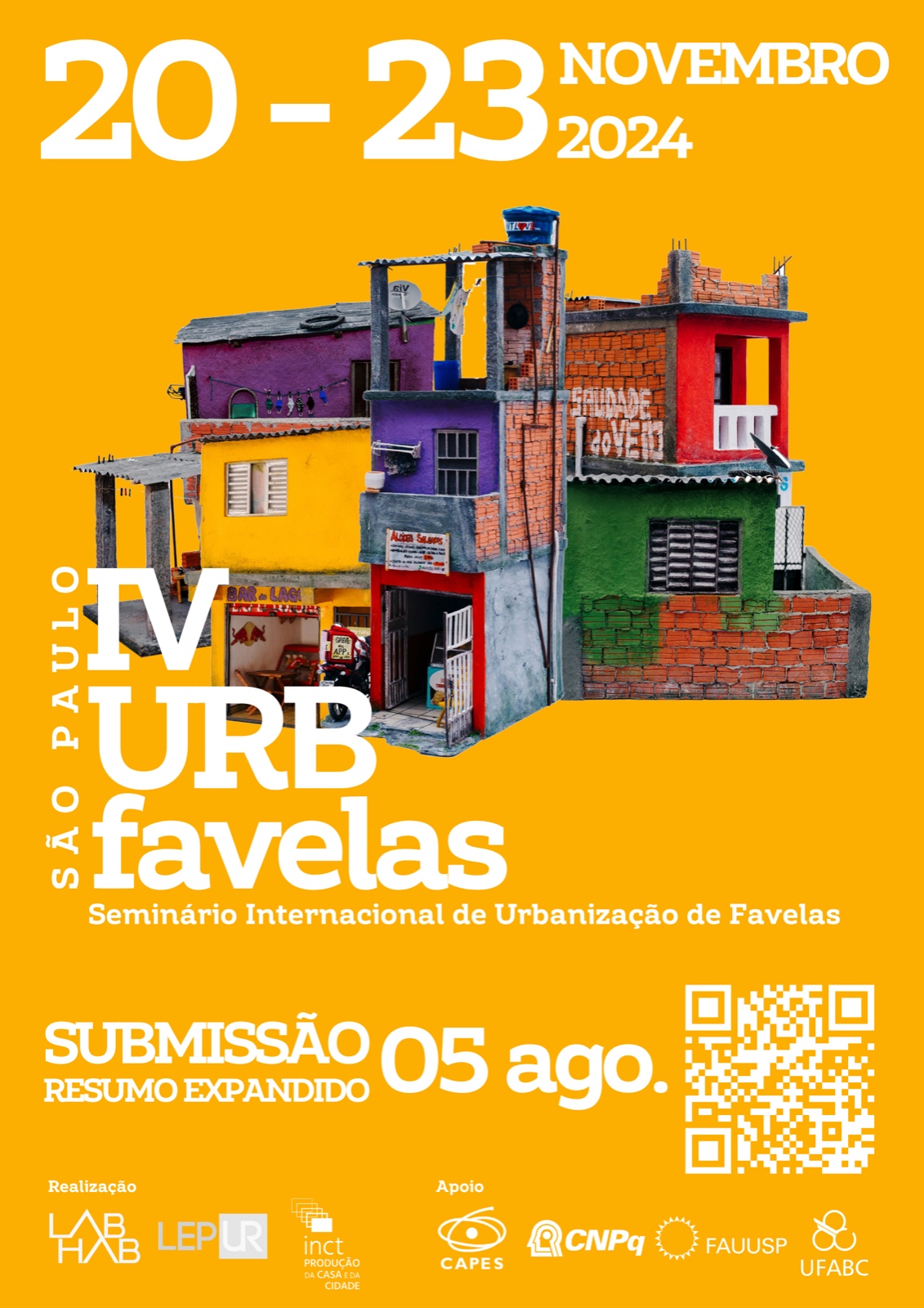Divulgamos a chamada de trabalhos para o IV URBfavelas – Seminário Internacional de Urbanização de Favelas, que ocorrerá de 20 a 23 de novembro de 2024, na Universidade de São Paulo (USP). O evento tem por objetivo reunir especialistas, acadêmicos, líderes comunitários e profissionais envolvidos na urbanização de favelas para discutir os desafios e avanços nessa área tão crucial para a sociedade brasileira.