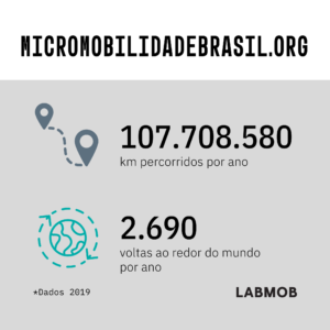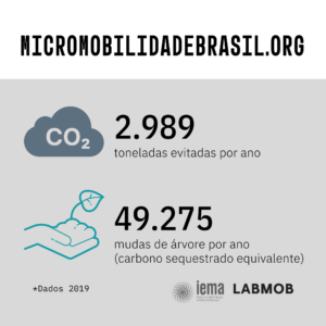 No ano de 2019, os dados agregados mostram que foram percorridos 295 mil quilômetros por dia nos sistemas de micromobilidade compartilhada públicos levantados, o equivalente a 2,69 mil voltas ao redor mundo por ano. A partir desses valores, estima-se que os sistemas evitaram a emissão de 2.989 toneladas de CO2e (dióxido de carbono equivalente) por ano, o equivalente ao carbono sequestrado pelo plantio de 49.275 mudas de árvores no mesmo período.
