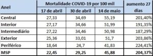 Tabela 1 –Taxa de Mortalidade COVID-19 por Anéis. De 17 de abril a 14 de maio de 2020.