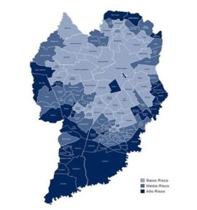 Mapa 5 – Distribuição das unidades de saúde de acordo com o Índice de Vulnerabilidade das Áreas de Abrangência das Unidades Municipais de Saúde (IVAB).