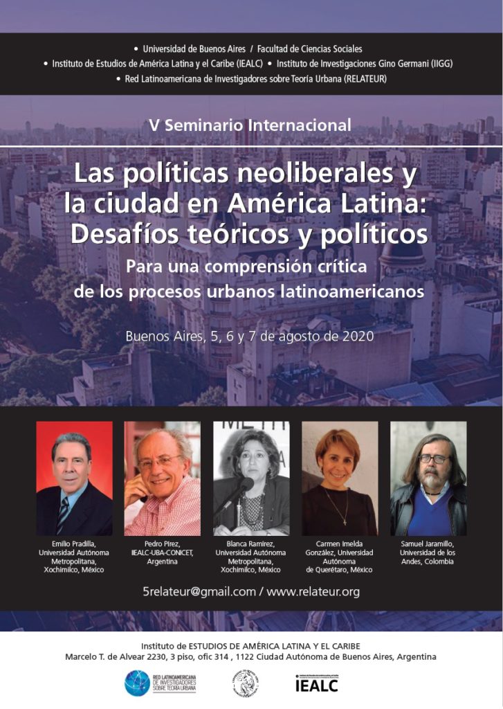 Está aberta até o dia 30 de outubro de 2019 a chamada de trabalhos para o V Seminário Internacional da Red Latinoamericana de Investigadores sobre Teoría Urbana (RELATEUR) que ocorrerá entre os dias 5 a 7 de agosto de 2020, em Buenos Aires (Argentina).